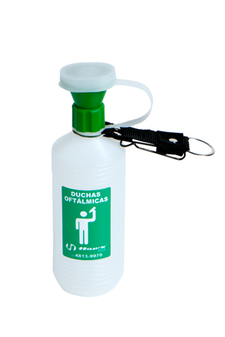 Modelo D 005-500 es la ducha oftálmica de emergencia, con una botella plástica con capacidad para 500ml, y el soporte para prender en la cintura/cinturón. Recomendamos para locales con polvo o insectos. Poner en las botellas agua potable o el suero fisiológico.
